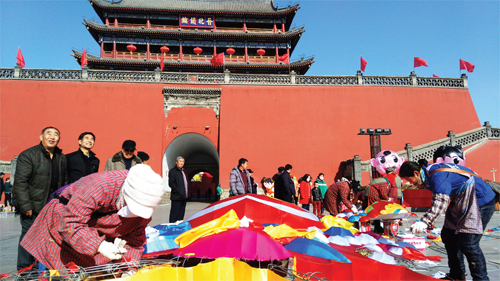 2月17日,市民在忻府區(qū)古城樓廣場(chǎng)觀看能工巧匠們制作、安裝“鼓舞猴年”大型主題燈展。元宵佳節(jié)將至,忻州城區(qū)處處張燈結(jié)彩,節(jié)日氣氛越來越濃。(宮清華 攝)