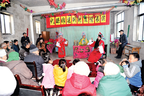 為了搶救劉街道情“非遺”劇種,弘揚和傳承雁門文化,新高鄉(xiāng)劉街村“ 兩委”班子多方籌措資金,購買服裝道具和文武場樂器,于近期成立了由30多人組成的劉街道情劇團,由老藝人傳授技藝。他們經過3個多月的精心排練,已排練出《李大開店》、《夜宿花亭》、《雷橫磕枷》、《大上吊》、《劈棺》、《耍火》等8個劇目,將于元宵節(jié)期間亮相于縣城街頭,向全縣人民匯報演出。圖為熱心觀眾觀看劉街道情《李大開店》劇目的排練。(石俊文 劉睿 攝)