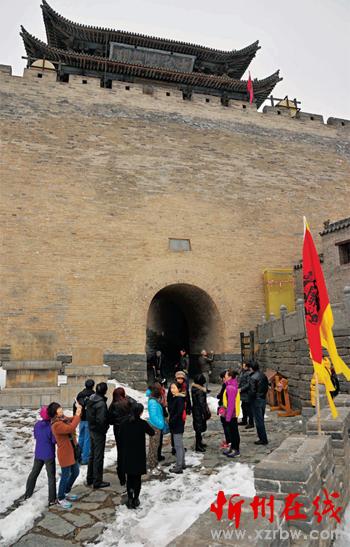 “兩節(jié)”過(guò)后的雁門(mén)關(guān)景區(qū),一片銀裝素裹讓南來(lái)北往的游客沉醉在山舞銀蛇、關(guān)樓雄壯、長(zhǎng)城如蟒的北國(guó)風(fēng)光之中,體驗(yàn)邊塞生活,抒發(fā)懷古幽情。圖為游客在雁樓前停留。(石俊文 攝)