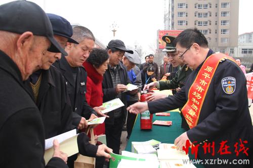 3月15日,原平市開展了“3.15國際消費者權(quán)益日”宣傳咨詢服務活動?!岸拘袆印遍_展以來,該市組織消防、藥品等有關部門工作人員開展以“新消費 我做主”為主題多種形式的宣傳咨詢服務,設立了咨詢臺、打擊非法集資等展示臺,接受群眾咨詢,并發(fā)放各種宣傳材料十萬余份,提高消費者法制法規(guī)和知假辯假的能力。圖為消防工作人員向消費者講解如何識別偽劣滅火器。(褚震 攝)