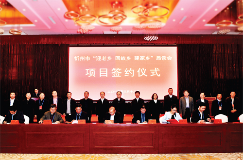 本報訊(記者 楊峰雷)3月18日下午,我市舉辦“迎老鄉(xiāng)、回故鄉(xiāng)、建家鄉(xiāng)”懇談會,來自全國28家山西商會的110多名負責人、企業(yè)家,與我市各級各相關(guān)部門負責人和企業(yè)家歡聚一堂,共商家鄉(xiāng)發(fā)展大計,并舉行了項目簽約儀式。市委書記李俊明出席并講話,市委副書記、市長鄭連生致辭,市委常委、副市長王士樺主持,各縣(市、區(qū))長、市直相關(guān)部門負責人參加了懇談會。