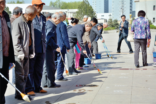 近日,定襄縣委老干局和縣老年書畫研究會(huì)組織該縣50余名書法愛好者在金鼎文化廣場開展了以“匯聚正能量、展示新精神”為主題的社會(huì)主義核心價(jià)值觀地書活動(dòng)。活動(dòng)旨在倡導(dǎo)和弘揚(yáng)社會(huì)主義核心價(jià)值觀基本內(nèi)容和普及推廣“地書“文化。(張玉虎 攝)