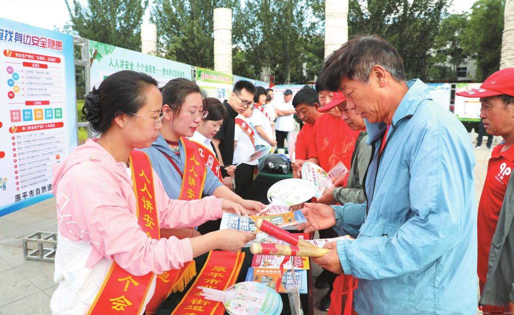 6月16日,在原平市范亭文體廣場,工作人員正在向市民發(fā)放安全生產(chǎn)知識宣傳手冊。據(jù)悉,今年6月是第24個全國“安全生產(chǎn)月”。為弘揚安全發(fā)展理念,提升公眾安全意識,該市組織消防、應(yīng)急保障、公安交警等部門,聯(lián)合開展了以“人人講安全、個個會應(yīng)急——查找身邊安全隱患”為主題的“安全生產(chǎn)月”現(xiàn)場安全咨詢和教育體驗活動?;顒又?,集中宣傳安全生產(chǎn)政策法規(guī)、應(yīng)急避險和自救互救方法等,以提升全民應(yīng)急素養(yǎng)。(褚震攝) |