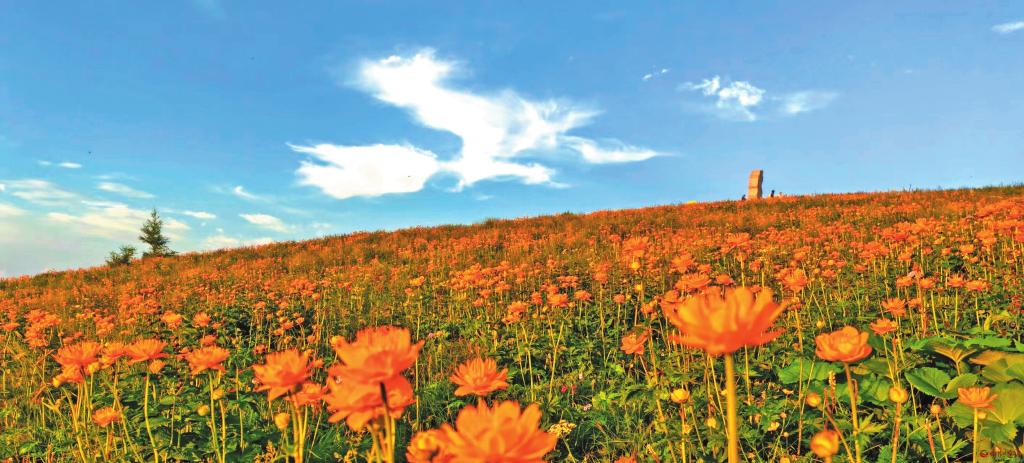 仲夏時節(jié),五臺縣駝梁風(fēng)景區(qū)金蓮花盛開,獨(dú)特的自然風(fēng)光和涼爽的氣候吸引眾多游客前往休閑旅游。 (