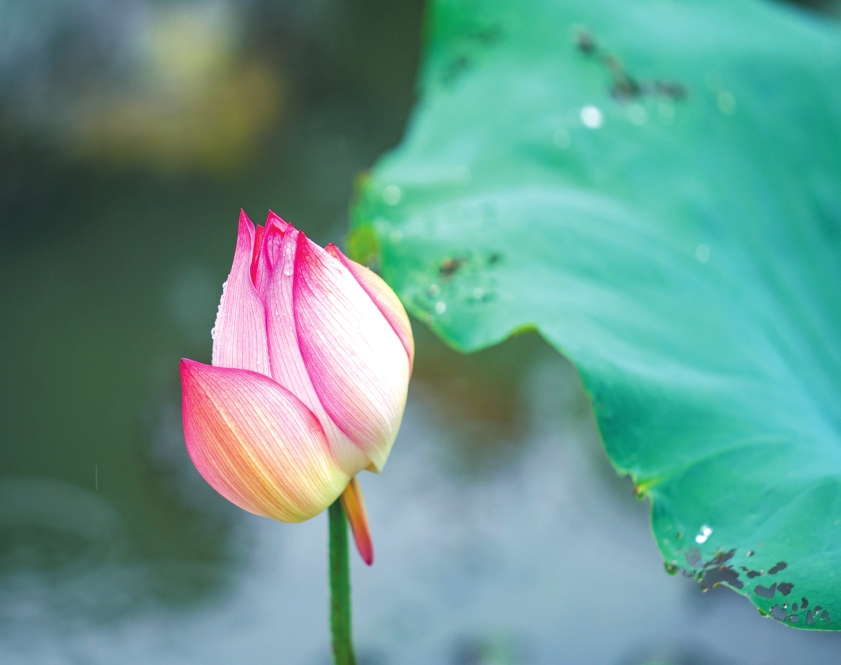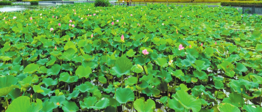 晨霧未散時(shí),“綠云”先漫過了河岸——層層疊疊的荷葉浮在水面,像被風(fēng)吹過的綢緞,葉尖凝著的荷露,是天空落進(jìn)人間的碎鉆。粉白的荷從“綠云”里探出頭,半開的像未寫完的詩箋,盛放的似被陽光吻過的笑靨,連風(fēng)掠過時(shí)都輕了三分,怕驚碎這池溫柔。