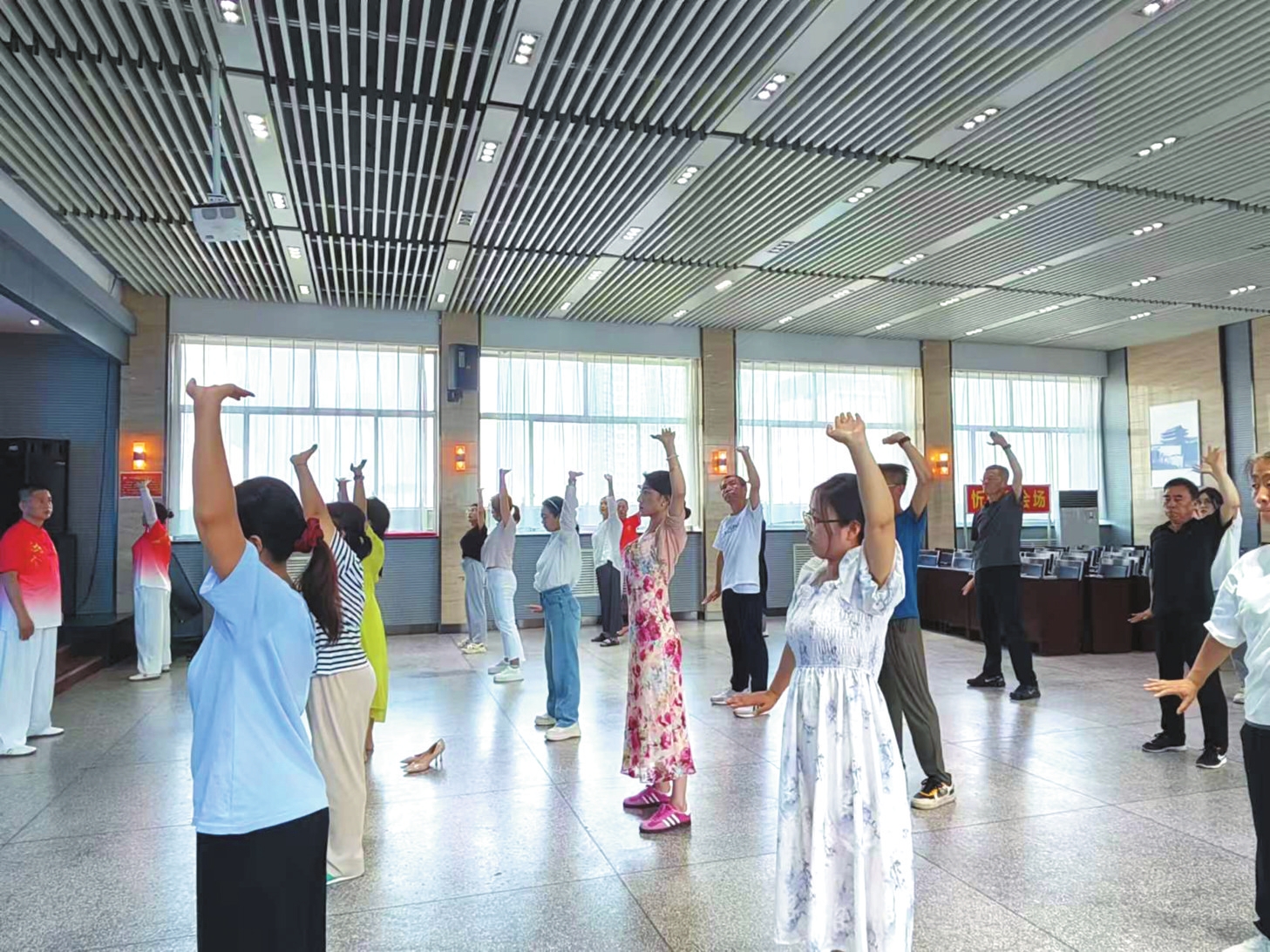 社會(huì)體育指導(dǎo)員走進(jìn)市發(fā)改委開(kāi)展全民健身志愿服務(wù)活動(dòng)。
