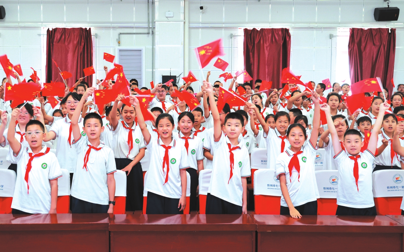 忻州市七一路小學(xué)學(xué)生觀看紀(jì)念大會(huì)。張存良攝