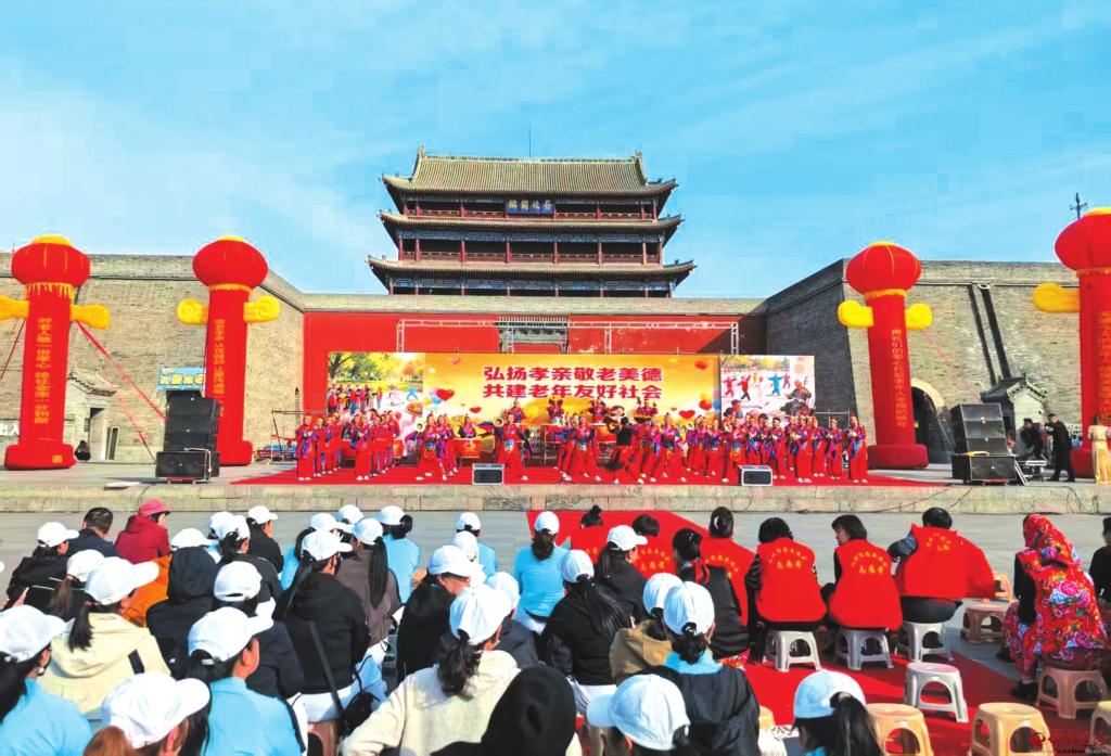 “弘揚(yáng)孝親敬老美德,共建老年友好社會?!?月25日,由忻州市老齡工作委員會主辦的“2025年忻州市‘敬老月’啟動儀式”在忻州古城北城門樓廣場隆重舉行。活動由忻州市民政局、忻府區(qū)民政局、中國人壽保險(xiǎn)有限公司忻州分公司承辦。圖為啟動儀式現(xiàn)場。(鄭志東攝)