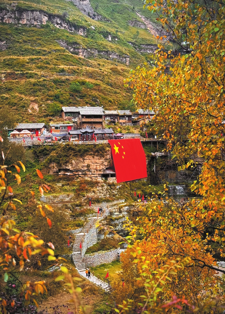 寧武懸空村,迎風舞動的五星紅旗分外奪目。吳光宇攝
