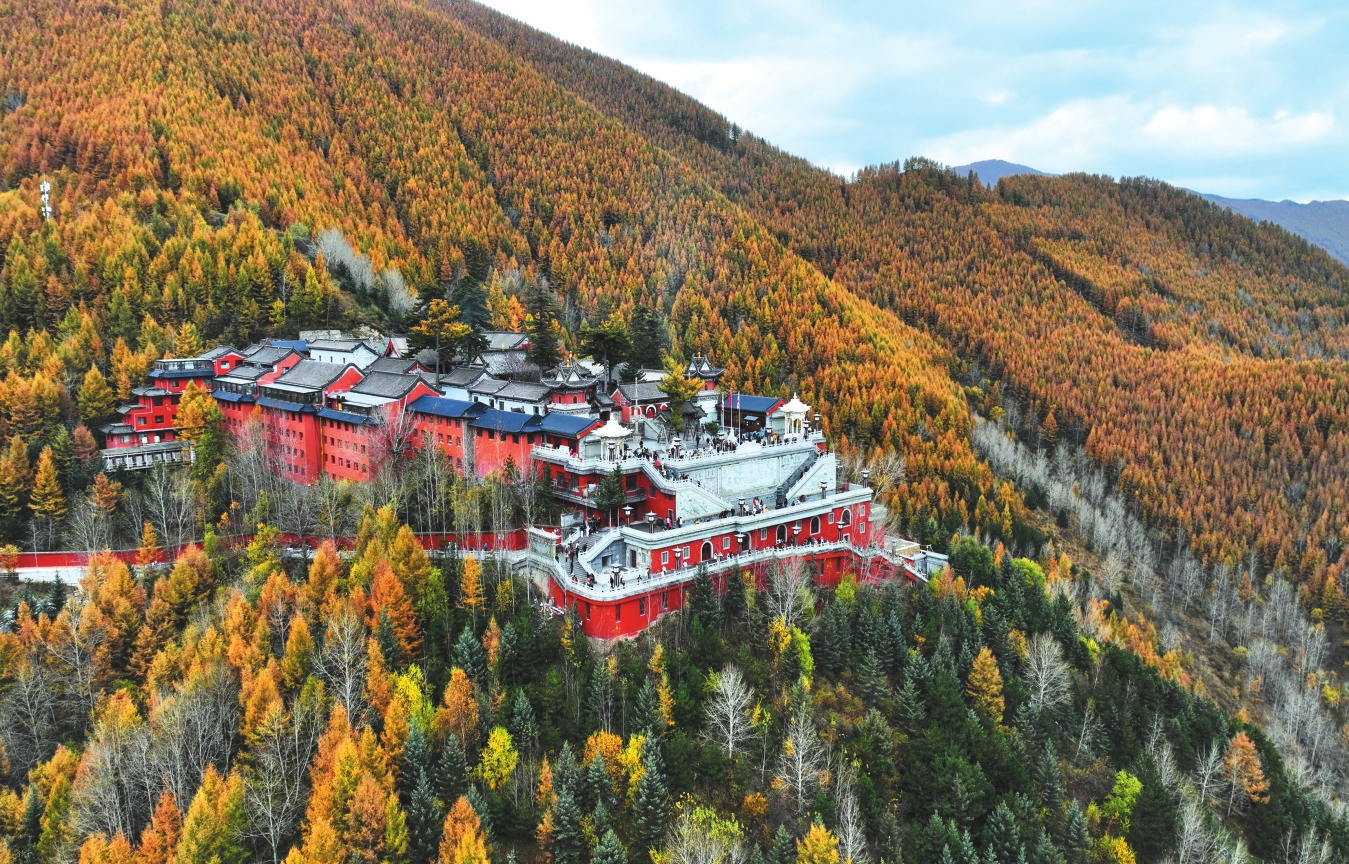秋季已近尾聲,五臺山的秋色卻進(jìn)入最絢爛的篇章。漫山松柏與闊葉林褪去翠綠,換上金色、赤紅與橙黃的華服,與千年古剎的紅墻黛瓦相映成景,吸引海內(nèi)外游客共赴這場秋日禪意之約。