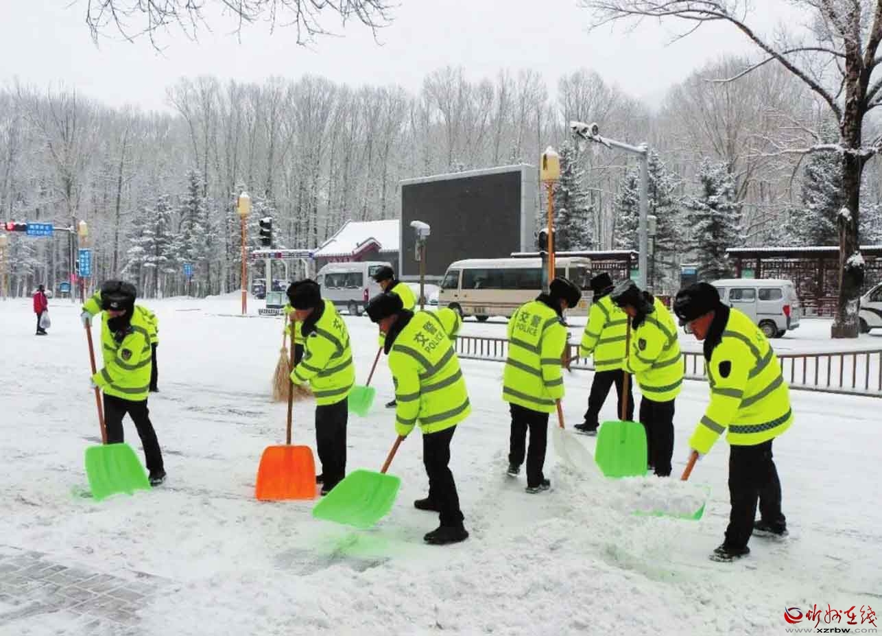 11日傍晚,景區(qū)交警大隊(duì)啟動(dòng)惡劣天氣應(yīng)急預(yù)案,堅(jiān)持“警力跟著雪情走、管控跟著風(fēng)險(xiǎn)走”,對(duì)西線、北線等重點(diǎn)路段實(shí)施臨時(shí)交通管控,并將警力精準(zhǔn)投放到主干道及各關(guān)鍵節(jié)點(diǎn)。12日上午,執(zhí)勤民警、輔警頂風(fēng)冒雪,奮戰(zhàn)在清雪除冰第一線。風(fēng)雪中,一抹抹流動(dòng)的“熒光綠”成為最醒目的安全坐標(biāo),通過現(xiàn)場疏導(dǎo)、隱患排查與實(shí)時(shí)提示,全力筑牢道路交通安全防線。