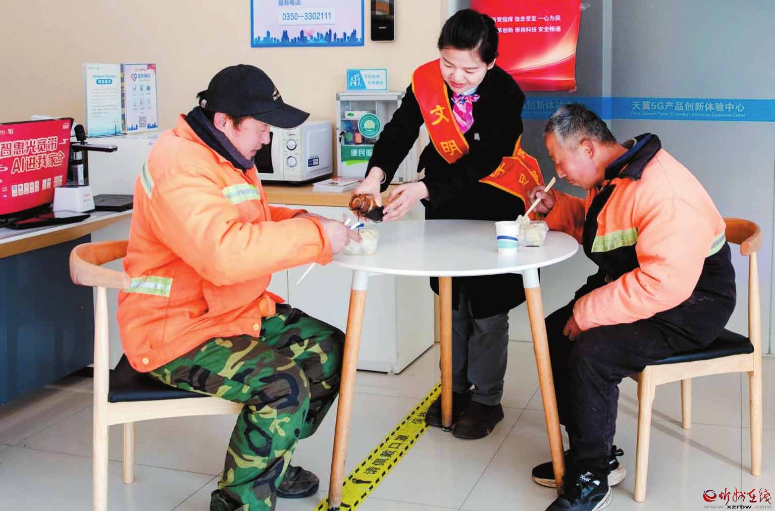 活動(dòng)當(dāng)天,忻州電信各網(wǎng)點(diǎn)“愛(ài)心翼站”成為溫馨的“暖心補(bǔ)給站”。“愛(ài)心翼站”的志愿者一大早就忙碌起來(lái),精心準(zhǔn)備了熱氣騰騰的餃子和香氣撲鼻的熱茶,他們走出營(yíng)業(yè)廳,熱情地招呼環(huán)衛(wèi)工人:“師傅,今天是冬至,這么冷的天,您辛苦一大早啦,快到咱營(yíng)業(yè)廳里吃些餃子暖和暖和……”環(huán)衛(wèi)工人們一邊吃著餃子,一邊連連感謝,為忻州電信的愛(ài)心服務(wù)豎起大拇指。