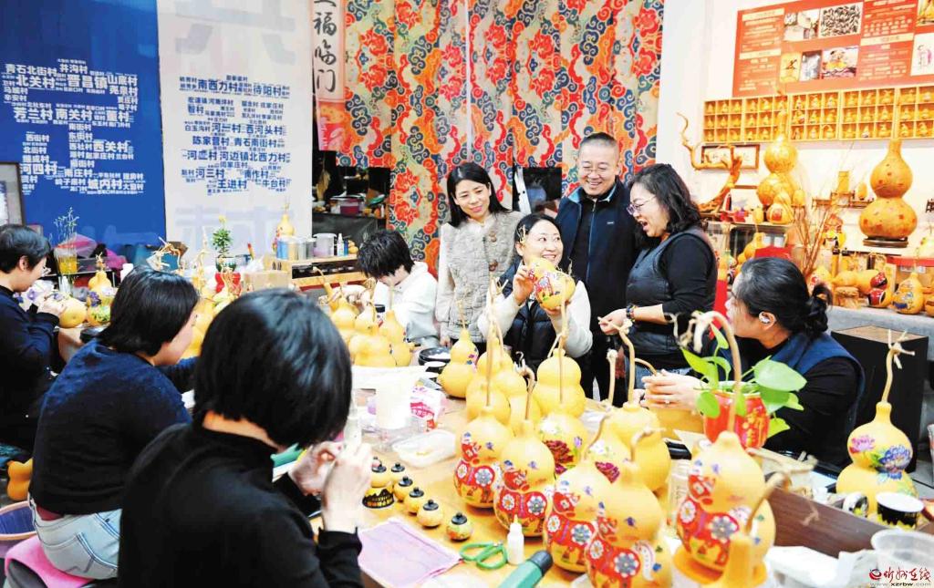 1月17日,定襄縣弘揚(yáng)遠(yuǎn)傳媒有限公司的員工正在趕制一批上海和香港訂制的葫蘆景泰藍(lán)馬年文創(chuàng)產(chǎn)品。(