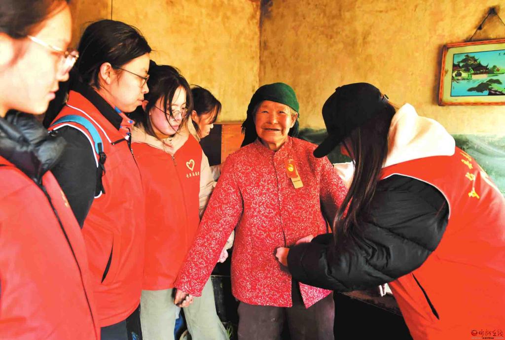 近日,五臺縣志愿者協(xié)會協(xié)同工業(yè)園社區(qū)志愿者和大學(xué)生志愿者,帶著精心準(zhǔn)備的年貨,走進(jìn)溝南鄉(xiāng)翟子溝村、東雷鄉(xiāng)東山底村、陳家莊鄉(xiāng)王城村等地,看望慰問十二戶孤寡老人和困難家庭,向他們送上社會各界的關(guān)懷和新春的溫暖祝福。圖為志愿者為腿腳不便的高齡老人試穿新衣服。(盧俊華 攝)