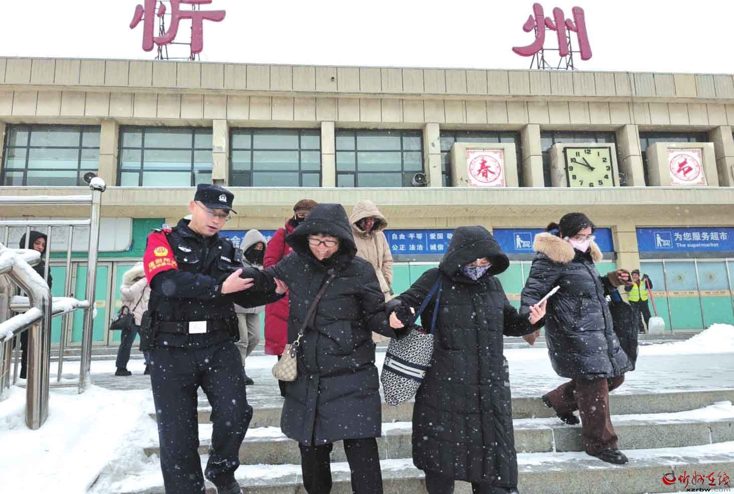 2月9日,忻州突降大雪,忻州站派出所干部民警全員堅(jiān)守崗位,在站前廣場、進(jìn)站口等重點(diǎn)區(qū)域巡邏防控值守執(zhí)勤。民警主動攙扶旅客、提醒注意防滑,及時幫扶行李較多的乘客,排查整治安全隱患,用實(shí)際行動踐行“人民公安為人民”的承諾,確保春運(yùn)期間旅客出行平安。(于新梅攝)