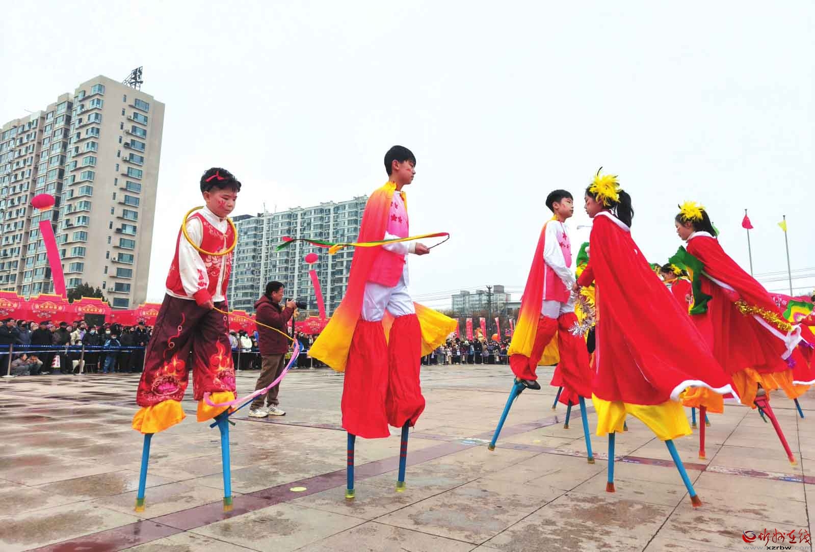 元宵節(jié)期間,定襄縣兒童高蹺隊以稚嫩卻堅定的舞步演繹傳統(tǒng)技藝。(
