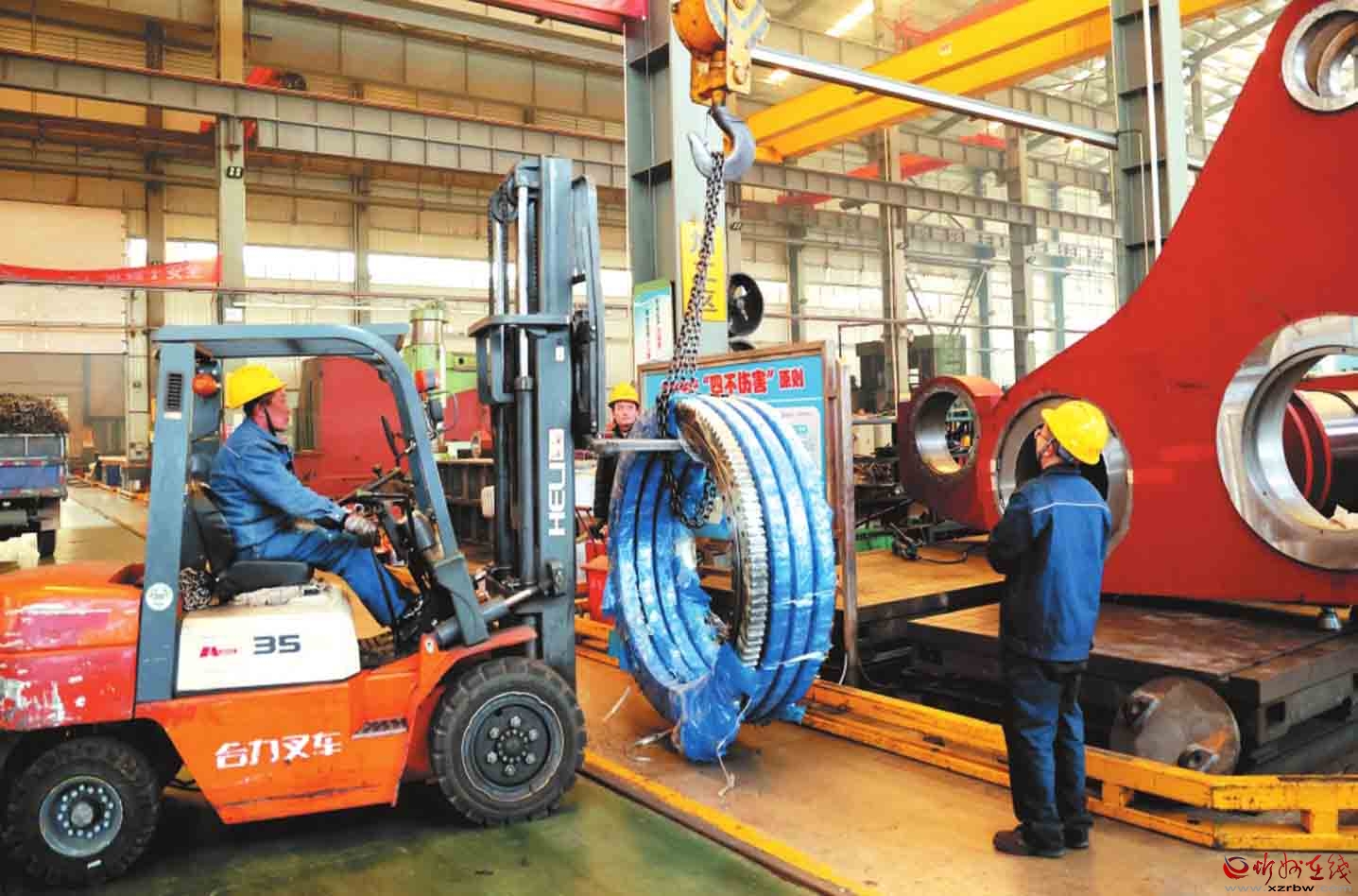 山西晨輝鍛壓設(shè)備制造有限公司生產(chǎn)車(chē)間,工人搶時(shí)間趕進(jìn)度,全力保障首季訂單任務(wù)按時(shí)完成。(記者張存良攝)