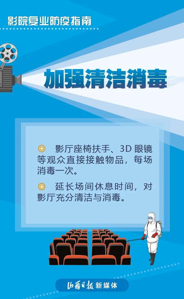 近日,國家電影局發(fā)布《關于在疫情防控常態(tài)化條件下有序推進電影院恢復開放的通知》稱,低風險地區(qū)在電影院各項防控措施有效落實到位的前提下,可于7月20日有序恢復開放營業(yè)。具體要求如下↓↓↓