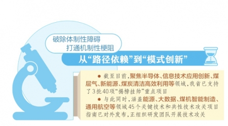 截至目前,聚焦半導(dǎo)體、碳基新材料、信息技術(shù)應(yīng)用創(chuàng)新、煤層氣、新能源、煤炭清潔高效利用等領(lǐng)域,我省已支持了3批40項“揭榜掛帥”重點項目,省財政引導(dǎo)資金2億元,帶動企業(yè)投資7億元。與此同時,涵蓋能源、大數(shù)據(jù)、煤機智能制造、通用航空等領(lǐng)域45個關(guān)鍵技術(shù)和共性技術(shù)攻關(guān)項目指南已對外發(fā)布,正組織研發(fā)團(tuán)隊開展技術(shù)攻關(guān)。