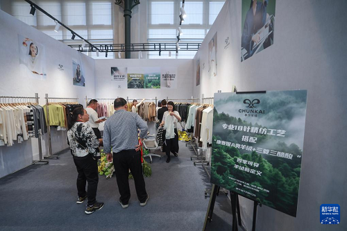 5月12日拍攝的“濮院集·秋韻共織”訂貨交易會,共有30多家濮院本土針織品牌廠商參加。(新華社記者 徐昱 攝)