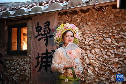 蟳埔村位于福建泉州灣晉江入???,是古代海上絲綢之路重要起點(diǎn)之一,已有千年歷史。蟳埔女簪發(fā)戴花的古老民俗被稱為“簪花圍”?!棒⒒▏庇苫▏c發(fā)簪組成,骨制的發(fā)簪和用玉蘭、山茶、菊花等鮮花制作的花圍,隨四季時(shí)令與個(gè)人喜好,成為蟳埔女生活中不可或缺的元素。2008年,以“簪花圍”為代表的蟳埔女習(xí)俗被列入第二批國家級(jí)非遺名錄。