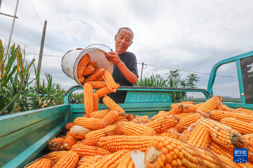 8月23日,河北省玉田縣虹橋鎮(zhèn)農(nóng)民在收獲玉米。(新華社發(fā) 劉滿倉 攝)