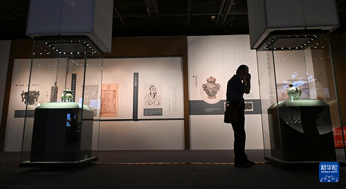 琉璃河遺址出土文物克盉(左)、克罍在展覽中同時展出(8月28日攝)。(新華社記者 陳鐘昊 攝)