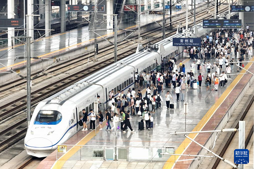 8月31日,旅客在江蘇常州火車站乘車出行(無(wú)人機(jī)照片)。(新華社發(fā) 陳暐 攝)