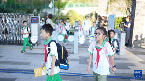 9月1日,貴陽市實(shí)驗(yàn)小學(xué)未來方舟分校的學(xué)生走進(jìn)校園。(新華社記者 陶亮 攝)