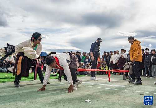 9月6日,在那曲市恰青賽馬節(jié)現(xiàn)場,選手們參加押加比賽。(新華社記者 丁增尼達 攝)