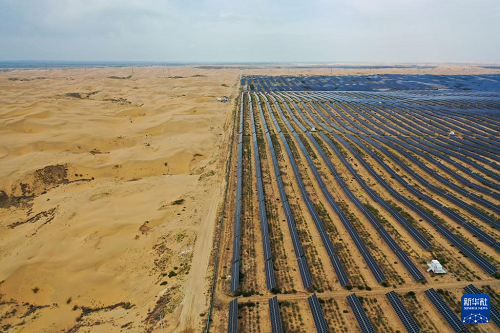 內(nèi)蒙古鄂爾多斯市達拉特旗境內(nèi)的庫布其沙漠里,一塊塊藍色光伏板鱗次櫛比、鋪陳排開,將沙海變成綠能涌動的“藍海”。近年來,達拉特旗依托光伏基地建設(shè),推廣應用“光伏治沙”模式,實現(xiàn)光伏板上發(fā)綠電,板下治理沙漠生態(tài),既帶動新能源產(chǎn)業(yè)發(fā)展,也促進庫布其沙漠治理。