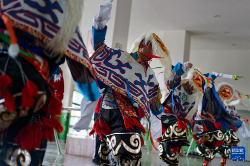9月9日,在拉薩市第二中等職業(yè)技術(shù)學(xué)校,學(xué)生們在練習(xí)藏戲。(新華社記者 張笑宇 攝)