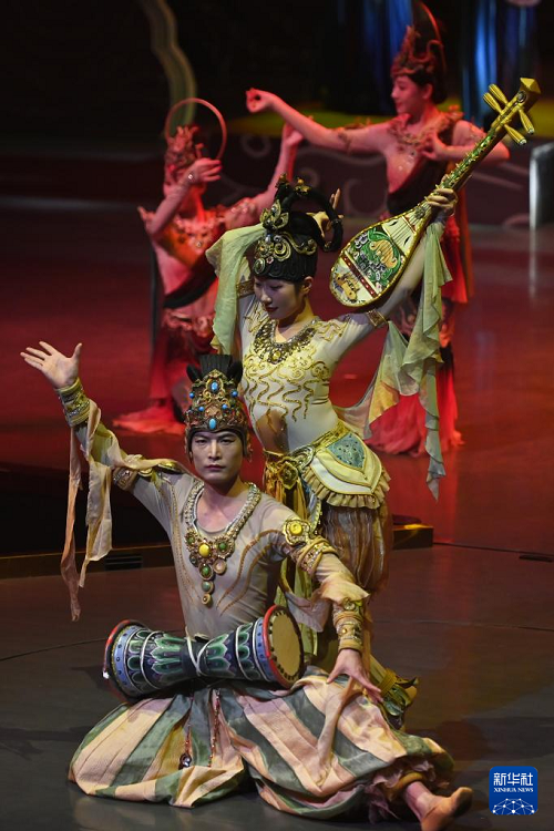 10月12日,演員在《樂動(dòng)敦煌》中表演。(新華社記者 范培珅 攝)