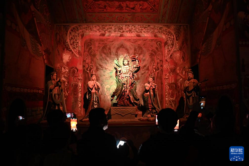 10月12日晚,洞窟式沉浸體驗(yàn)劇《樂動(dòng)敦煌》精彩上演,為前來甘肅省敦煌市參加“世界市長對話·敦煌”活動(dòng)的中外嘉賓上演一場精彩的文化盛宴。