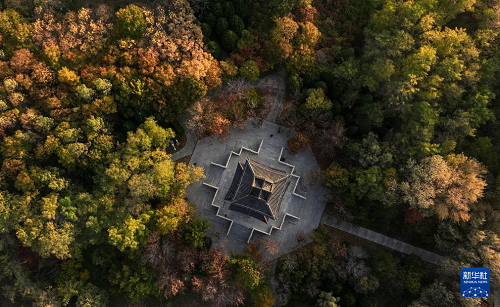 這是10月28日在銀川市海寶公園拍攝的秋景(無人機照片)。(新華社記者 馮開華 攝)