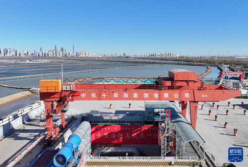11月27日拍攝的津濰高鐵津沽海河隧道盾構工區(qū)。(新華社記者 李然 攝)
