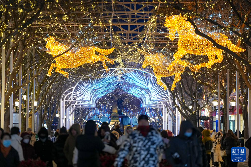 12月以來,哈爾濱進入冬季旅游旺季,中央大街上游人如織。作為哈爾濱市閃耀的城市名片,中央大街在豐富多彩的創(chuàng)意景觀與燈飾裝飾下顯得格外動人。夜幕降臨,華燈初上,游人徜徉其中,盡享當?shù)鬲毺匚幕攘Α?/p>