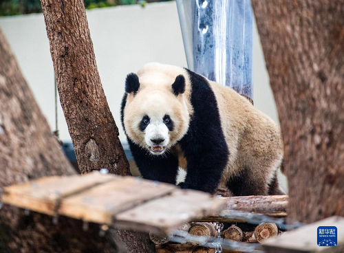 12月22日,入住的大熊貓?jiān)谶m應(yīng)新環(huán)境。(新華社記者 唐奕 攝)