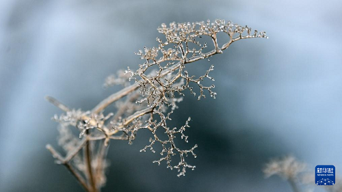 這是1月21日在三江侗族自治縣大塘坳水庫附近拍攝的被冰凌包裹的花朵。(新華社記者 張愛林 攝)