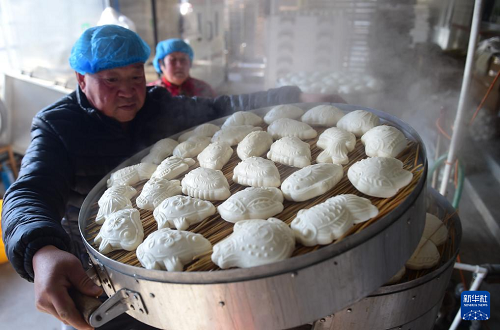 進入臘月,河北滄州部分鄉(xiāng)村的面花作坊進入生產(chǎn)旺季,人們忙著制作各種形狀的面花供應(yīng)市場。面花是一種用模子塑形加工后蒸制的特色面食,有魚、壽桃、十二生肖等造型,是當?shù)卮汗?jié)期間的特色食品,經(jīng)過揉面、搕花、晾花、蒸花等十多道工序制作而成。