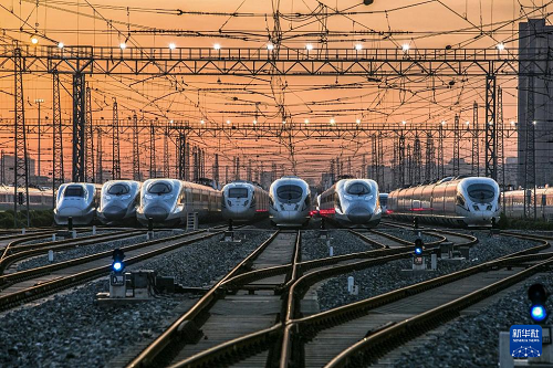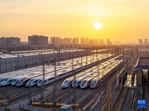春運(yùn)大幕即將拉開,中國(guó)鐵路西安局集團(tuán)有限公司西安動(dòng)車段內(nèi),高鐵動(dòng)車組靜候待發(fā)。