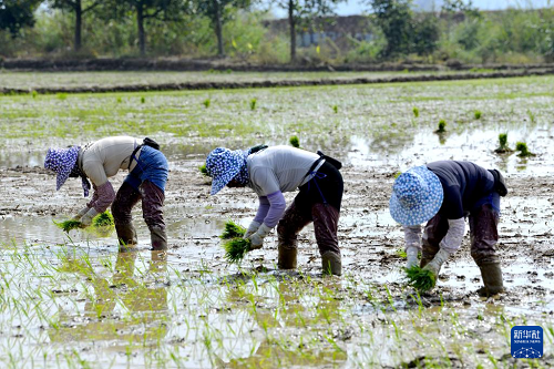 2月23日,云南省西雙版納州勐海縣勐遮鎮(zhèn)曼拉村的村民在稻田里插秧。(新華社發(fā) 佐連江 攝)
