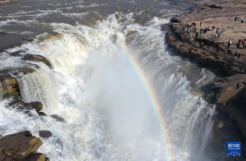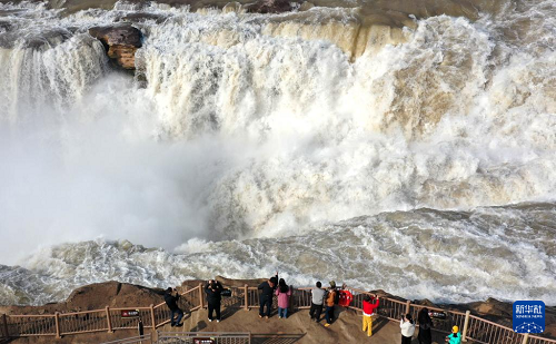 3月5日,游客在黃河壺口瀑布景區(qū)游覽(無人機照片)。(新華社發(fā) 呂桂明 攝)