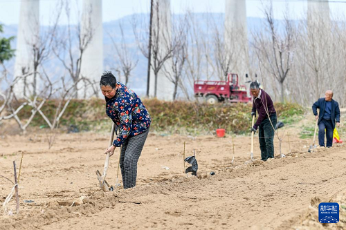 3月19日,山西省運(yùn)城市平陸縣張村鎮(zhèn)的農(nóng)民在種植樹(shù)苗。(新華社記者 曹陽(yáng) 攝)