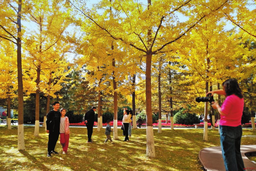 葉落知秋,霜落知寒,但屬于銀杏的時節(jié)才剛剛開始。忻州城區(qū)人民公園絢爛金黃的銀杏把秋日氣息渲染到了極致,使原本蕭瑟的秋季充滿融融暖意。滿樹的金黃,一片片、一簇簇,層疊排開、錯落有致,一陣微風吹過,扇形葉子飄灑而下,如漫天飛舞的金色蝴蝶,在空中翻轉,落成一地金黃,吸引無數(shù)游人打卡拍照、流連忘返。(本報記者 李濤 攝)