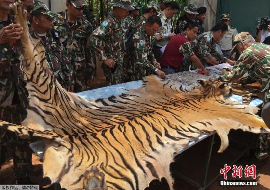資料圖:當(dāng)?shù)貢r(shí)間6月2日,據(jù)外媒報(bào)道,泰國(guó)野生動(dòng)物保護(hù)機(jī)構(gòu)又在涉事寺廟中發(fā)現(xiàn)了虎皮和大批用老虎尸體制作的護(hù)身符。