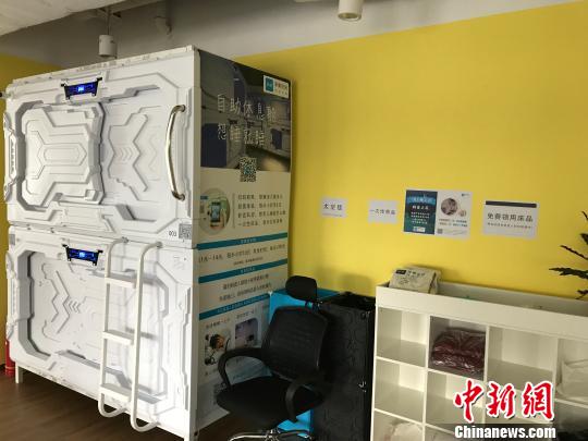 擺放在墻邊的共享睡眠艙 岳依桐 攝
