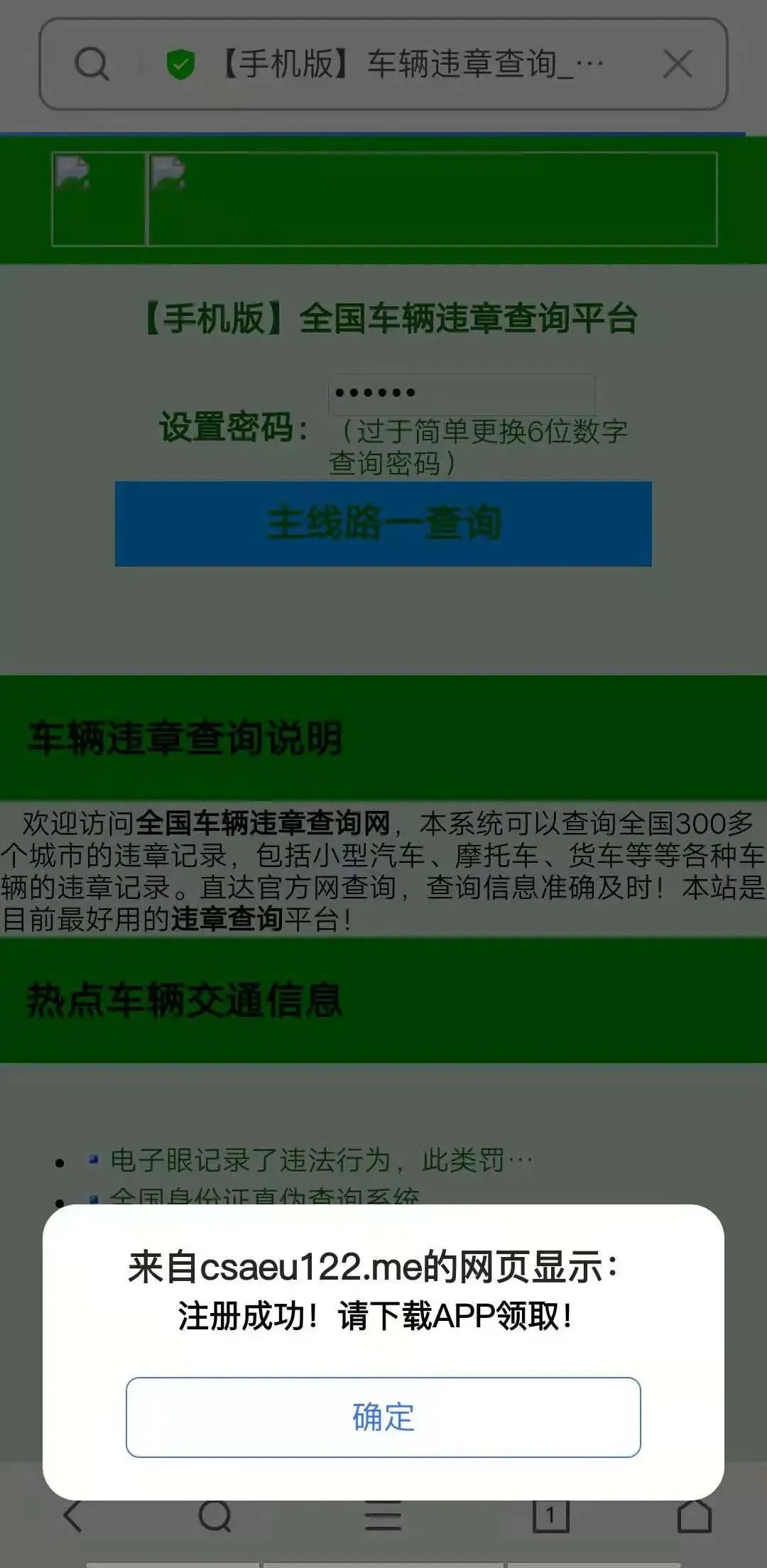 彈出的卻是山寨版違章查詢(xún)平臺(tái)