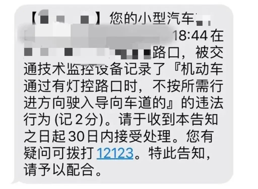 收到了這樣的違章信息