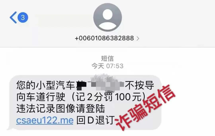 第一步:獲取信息。不法分子通過(guò)不正當(dāng)?shù)氖侄潍@取到受害者及車(chē)輛信息,然后通過(guò)改號(hào)軟件給車(chē)主發(fā)送“違章”的詐騙短信,并在短信中附上虛假網(wǎng)站的網(wǎng)址鏈接。